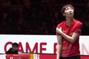王曼昱与伊藤美诚的第三局,王曼昱再次捏肩膀,引发网友对其伤病的担心。