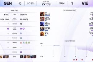 体育资讯12月6日讯 Kespa杯GEN对阵VIE的比赛,GEN被VIE暴打,双方人头比4-28。