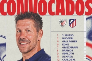 前锋:7-格列兹曼、9-瑟尔洛特、11-阿尔马达、19-阿尔瓦雷斯、20-朱利亚诺-西蒙尼、22-拉斯帕多里、23-冈萨雷斯