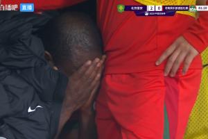 被换下!阿奇姆彭替补席捂脸痛哭,队友不停安慰。