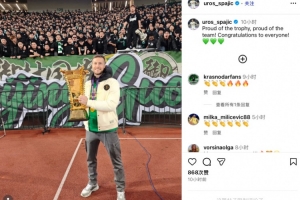 赛后国安外援斯帕吉奇更新社媒,晒出自己手捧足协杯冠军奖杯与球迷合影的照片,并配文写道:“为这份荣誉感到自豪,为球队感到自豪!祝贺与这个冠军相关的每一个人!”