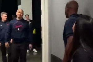 体育资讯12月7日讯 今天,多家美媒晒出视频,保罗正在和一个女性聊天,泰伦·卢走过来和后者拥抱一下。