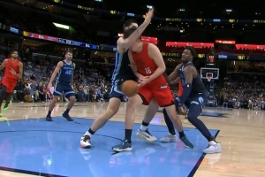 杨瀚森遭遇包夹被埃迪打到面部痛苦倒地 在地上躺了半天没起来