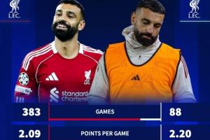 体育资讯12月08日讯 在萨拉赫炮轰利物浦将自己当作替罪羊后,德转统计了利物浦在萨拉赫出场以及缺阵的下的战绩对比,在萨拉赫缺阵时,利物浦的场均积分、进球数更高,但丢球数也更多。