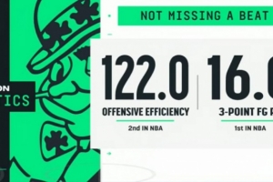 备注:绿军目前5连胜,排名升至东部第三
