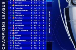 体育资讯12月11日讯 欧冠联赛阶段第6轮结束,据数据统计排名机构Football Rankings分析,10分能确保晋级附加赛(前24名),现在已有15队确保满足该条件。目前欧冠联赛还剩最后两轮,将在明年1月进行。