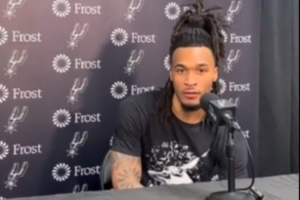 NBA杯1/4决赛,马刺在客场以132-119击败湖人。赛后小吧采访卡斯尔。