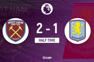 体育资讯12月14日讯 北京时间22:00,英超第16轮西汉姆联vs阿斯顿维拉,比赛在伦敦体育场打响!上半场,马特乌斯闪击破门,马夫罗帕诺斯自摆乌龙,随后鲍文破门帮助西汉姆联再次领先!半场结束,西汉姆联暂2-1领先维拉。