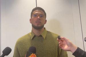 赛后,布克接受采访时谈到了自己对詹姆斯的关键三分犯规。