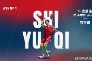 体育资讯12月15日讯 2025年世界羽联年度最佳运动员获奖名单公布,石宇奇当选年度最佳男子单打运动员。同时,石宇奇今年也当选运动员票选的年度最佳男子运动员。