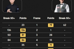 斯佳辉打出一杆破百(136)和三杆50+(88、74、55),马克·戴维斯打出单杆62分,双方战至决胜局,斯佳辉以4-3的比分战胜马克·戴维斯晋级32强。