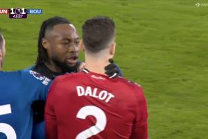 2024年2月足总杯曼联1-0诺丁汉森林,比赛尾声阶段,费利佩对B费做出锁喉动作,主裁听取VAR后没有表示。