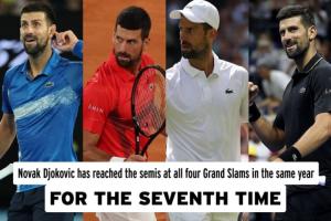 38岁德约本赛季四大满贯均打入半决赛,生涯第七次实现。