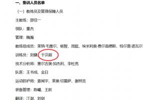 体育资讯01月01日讯 国足新一期大名单公布,这是邵佳一上任后的首期大名单,38岁的于汉超出现在“训练员”名单上。