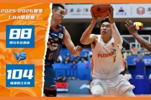 2025-2026赛季CBA常规赛第九轮今晚打响,福建晋江文旅男篮奔赴客场挑战四川丰谷酒业男篮。福建晋江文旅男篮在首节胶着后逐步掌控局势,凭借队长邹阳的爆发与全队复苏的外线手感(全场三分球33中19),最终以104-88大胜对手,取得新年首胜!四节比分分别是:24-24,31-21,22-18,27-25(福建晋江文旅男篮在前)。