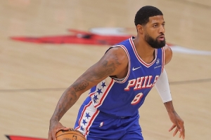 76人球员乔治本场比赛表现一般,他上半场表现还行,第三节状态明显下滑,投篮不中的同时也频频出现失误。