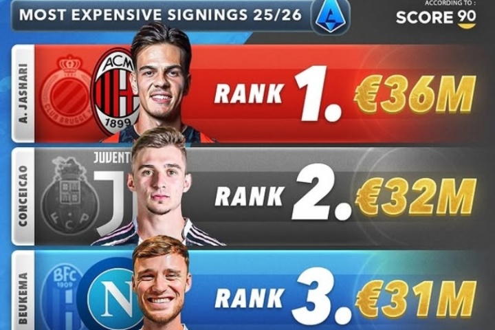 1、亚沙里,布鲁日斯→米兰,3600万欧
