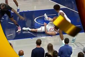 申京踩脚受伤