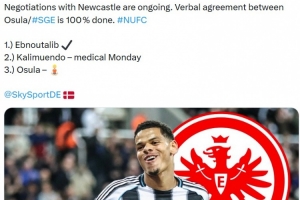 报道称由于队内前锋布尔卡特(可能缺席至二月底)和巴舒亚伊(三月底复出)的长期伤病,法兰克福正在寻找第三名前锋,并希望签下威廉·奥苏拉。球队与纽卡斯尔的谈判正在进行中,奥苏拉与法兰克福已经达成了口头协议。