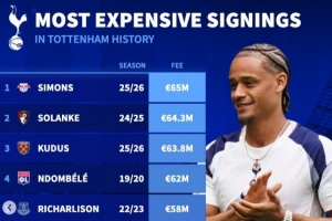 体育资讯9月5日讯 热刺主席列维官宣退休,《转会市场》也统计了他执掌热刺期间的最贵引援情况,孙兴慜未进入前十。