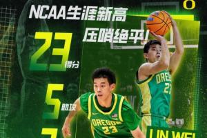 林葳打出个人来到NCAA赛场之后的最佳一战,全场比赛他上阵33分钟14投8中,三分12中6、罚球2中1,砍下23分1篮板5助攻2抢断,得分、出场时间和三分球等多项数据创个人NCAA生涯新高。