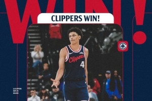 赛后,快船发布赢球海报,二轮秀科比·桑德斯成为封面人物!