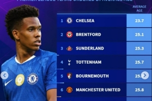 体育资讯1月7日讯 德转盘点了本赛季英超球队平均年龄最小阵容榜单,其中切尔西平均年龄仅23.7岁高居第一,具体如下: