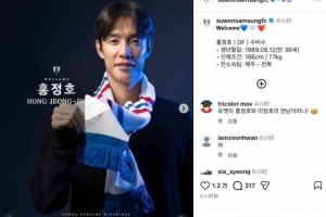 体育资讯1月7日讯 K联赛球队水原FC官方宣布,36岁前韩国国脚洪正好自由身加盟球队。