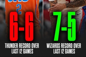 体育资讯1月7日讯 雷霆近期遭遇连败,在他们过去12场比赛中,他们仅取得了6胜6负的战绩。