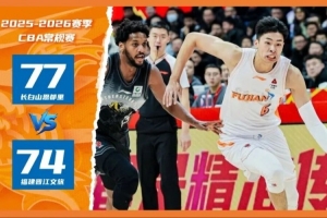 2025-2026赛季CBA常规赛第十二轮今晚打响,福建晋江文旅男篮客场挑战吉林长白山恩都里男篮,双方上演跌宕起伏的对决。主队在上半场建立两位数领先优势,第三节顶住对手反扑保住领先,却在末节遭遇逆转,关键时刻的连续失误葬送好局,最终福建晋江文旅男篮以74-77憾负对手。四节比分分别是:16-16,27-17,18-24,13-20(福建晋江文旅男篮在前)。