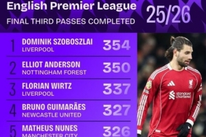 体育资讯1月10日讯 数据机构squawka统计了本赛季英超在进攻三区的成功传球次数情况,索博斯洛伊压安德森居首。
