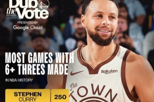 勇士官方晒出库里三分纪录,据统计,库里生涯至今已经有250场比赛至少投进6记三分,NBA历史高居第一!