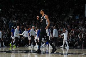 上半场比赛,文班亚马首发出战12分5秒,投篮10中5,三分4中1,罚球5中5,得到16分6篮板2抢断,正负值+21冠绝全场。