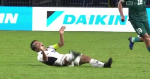 全场比赛补时阶段,伊拉克1-0领先泰国。此前有“泰国梅西”之称的泰国队球员颂克拉辛中圈带球突破,被身后的伊拉克十号莫哈纳德-阿里一脚踢在悬空的左腿膝盖处,颂克拉辛当场痛苦倒地并翻滚数圈!