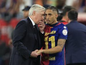 这位前锋在此次国际比赛日期间备受关注,成为西甲联赛唯一被征召的球员。巴萨甚至对其使用频率表示担忧,本赛季他已出战总比赛时间的84%(270分钟中登场229分钟)。但拉菲尼亚正是这支新巴西队的领袖之一,这位更衣室重量级人物在绿茵场上被视为无袖标的队长,安切洛蒂对其信任度甚至与维尼修斯等同级别核心持平。