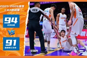 2025-2026赛季CBA常规赛第十四轮,福建晋江文旅男篮远赴北京国家奥林匹克体育中心体育馆,客场挑战北京控股男篮。面对全场最多落后23分,篮板仅为对手一半的逆境,主队福建晋江文旅男篮下半场掀起疯狂追分浪潮,在比赛最后5秒绝平比分!!虽然终场最后0.7秒被对手三分绝杀,以91-94憾负对手,但今晚主队打出本赛季最具韧性一战。四节比分分别是:9-23,22-25,29-21,31-25(福建晋江文旅男篮在前)。