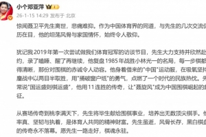 体育资讯1月15日讯 乒乓球名将邓亚萍发文,悼念“棋圣”聂卫平离世。