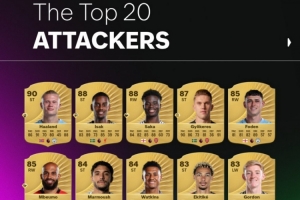 体育资讯9月9日讯 EA官方公布了FC26英超攻击手评分榜,其中哈兰德居首,具体如下: