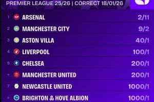 英超最新夺冠赔率: