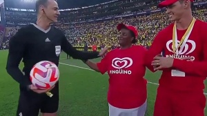 世预赛南美区厄瓜多尔1-0阿根廷,赛前凯塞多妈妈为比赛送球