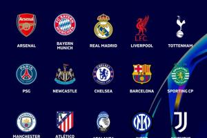 皇马、利物浦、热刺、巴黎、纽卡、切尔西、巴萨、葡萄牙体育、曼城、马竞、亚特兰大、国米、尤文