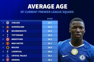 体育资讯1月24日讯 德转列当前英超各队平均年龄,切尔西23.7岁最小,富勒姆28.9岁最大。