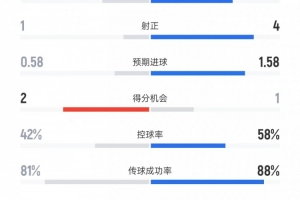 控球率——42%比58%