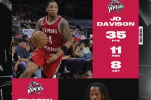 此役,火箭双向合同球员JD·戴维森出场38分钟24投13中,三分5中1、罚球6中5,砍下35分11篮板8助攻3抢断3盖帽。