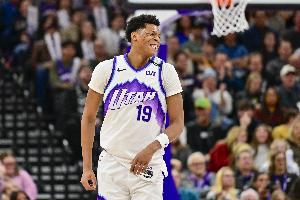 上半场,爵士5号秀贝利表现不错,半场结束的压哨三分球帮助球队完成反超,在14分钟的时间里,投篮8中5,三分球5中3,拿到13分1盖帽的数据。