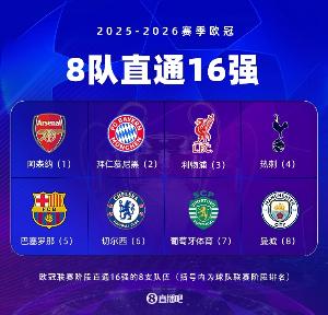 体育资讯1月29日讯 欧冠联赛阶段第八轮比赛全部结束,排名前八的球队确定。