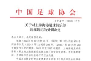 体育资讯01月29日讯 中国足协公布足球行业“假赌黑”处罚决定,上海海港俱乐部被扣5分并罚款40万元。