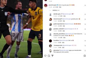 赛后麦卡利斯特和因卡皮耶在社媒上有爱互动,麦卡发社媒还原了当时他说的话:你不是这样的。