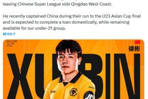 体育资讯01月30日讯 狼队今日宣布中国球员徐彬加盟。官方公告中还确认,徐彬将于本赛季的剩余时间在英格兰联赛完成租借,同时保留为狼队U21出战的资格,以此积累英格兰联赛经验。