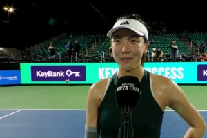 体育资讯8月22日讯 WTA250克利夫兰站结束一场女单1/4决赛争夺,中国选手王欣瑜逆转格鲁比奇,晋级本站四强。赛后,王欣瑜接受了现场记者采访。